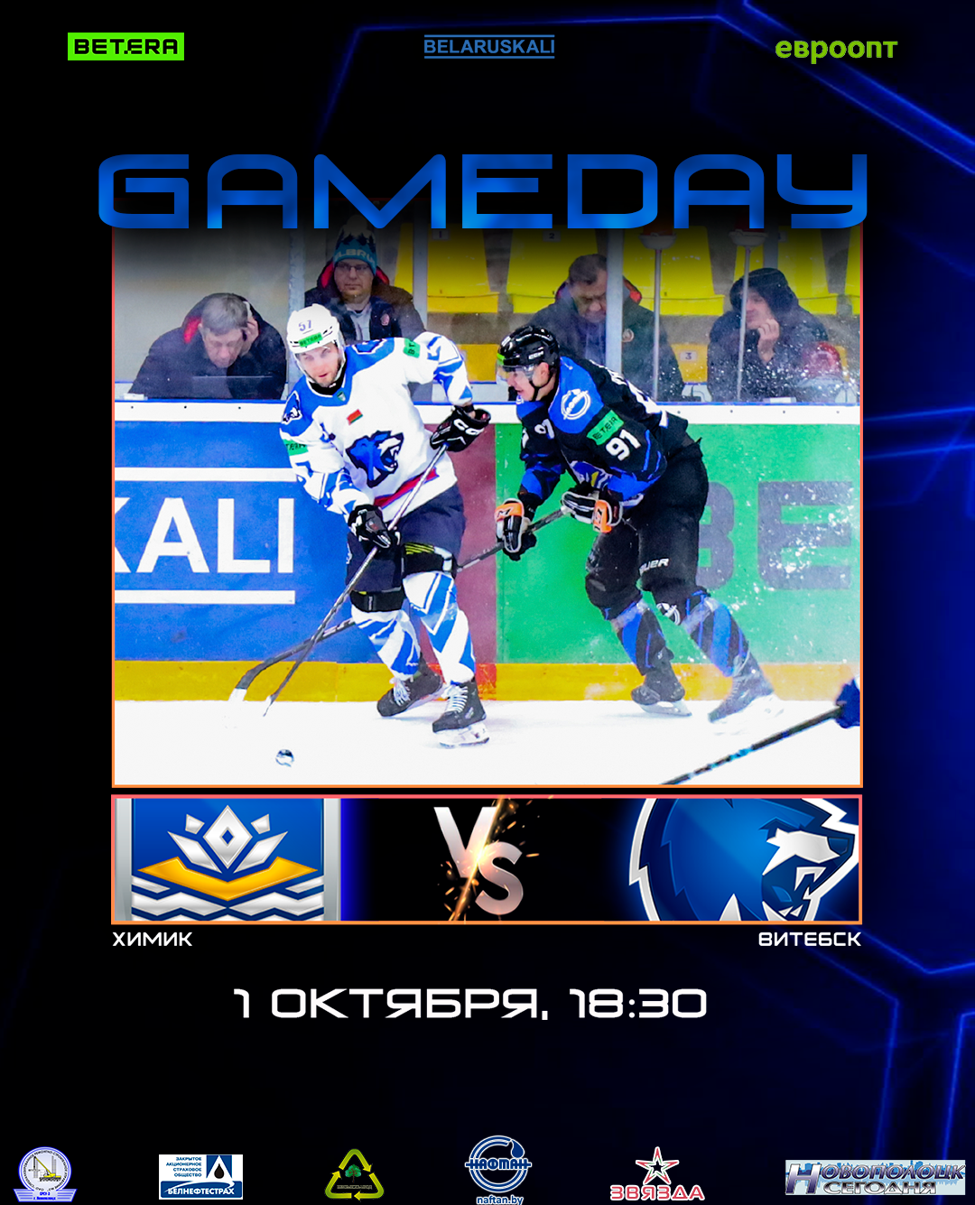 Начало матча в 18:30 в Ледовом дворце, г. Новополоцк.