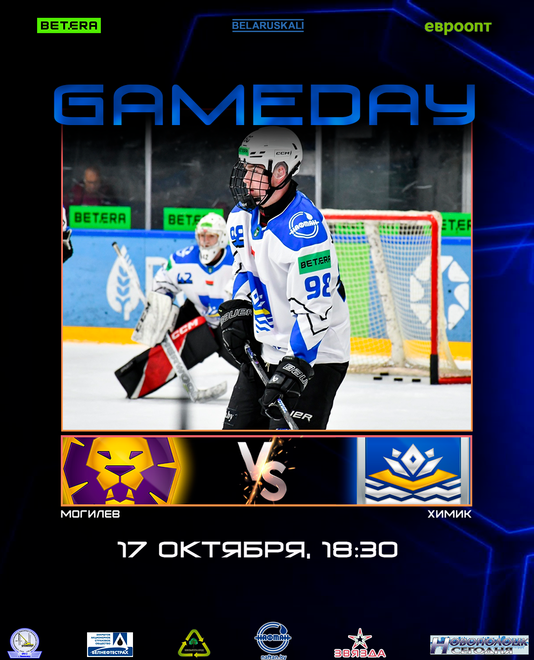 Начало игры в 18:30 в Ледовом дворце спорта, г. Могилев.