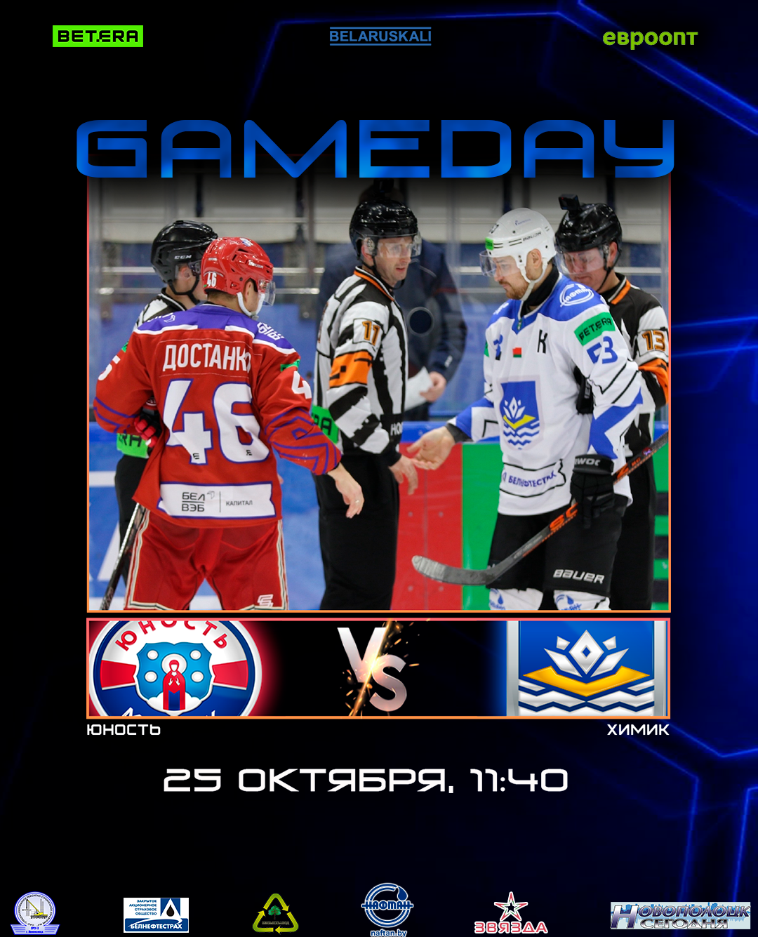 Начало игры в 11:40 на Чижовка-Арене, г. Минск.