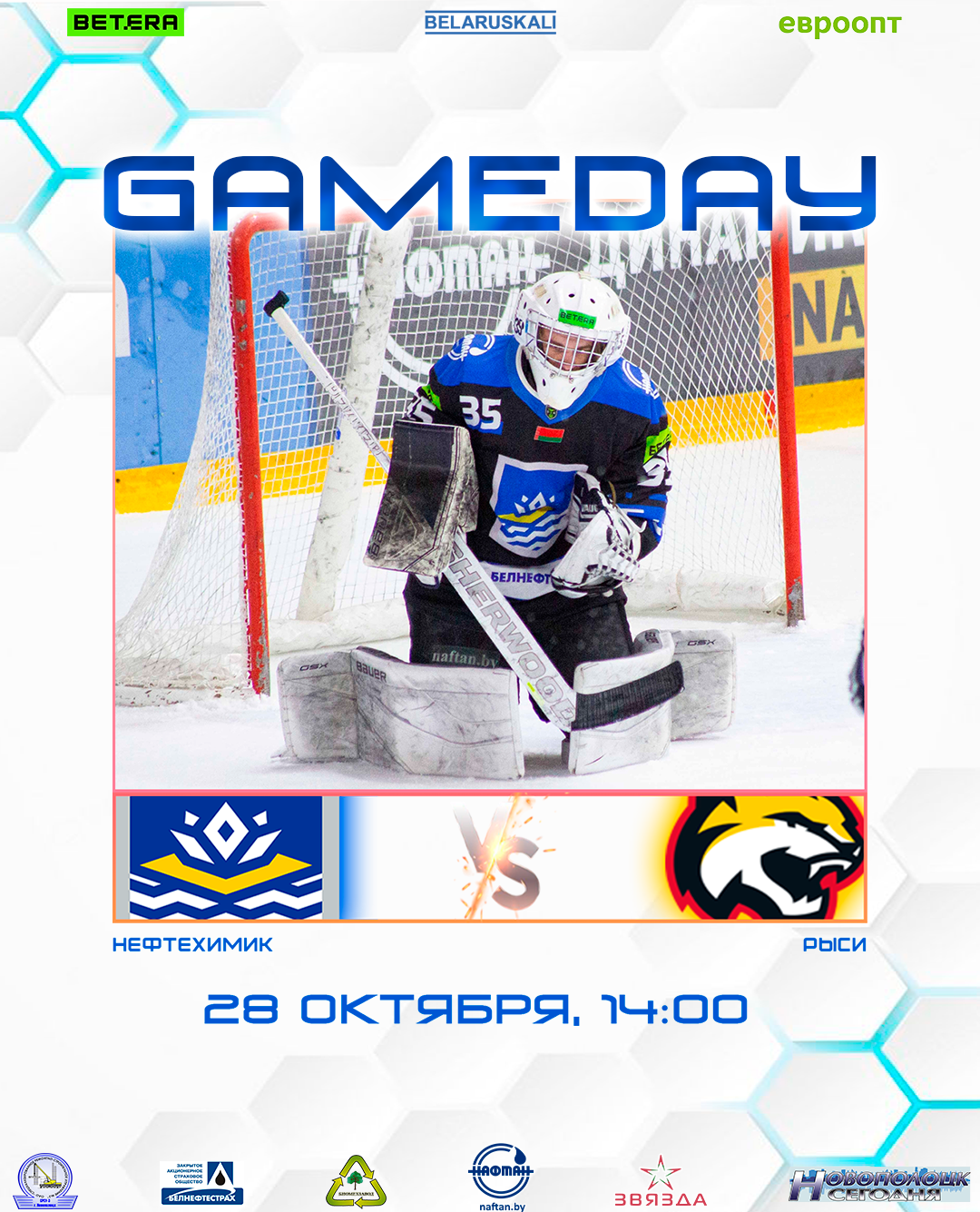 Начало игры в 14:00 в Ледовом дворце, г. Новополоцк.