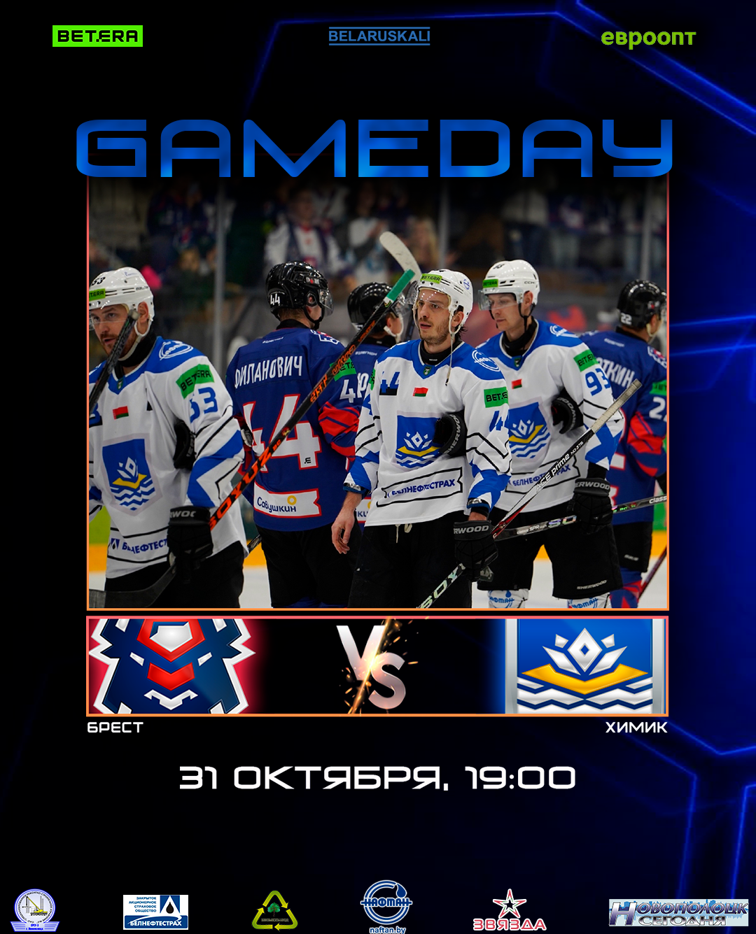Начало игры в 19:00 в Ледовом дворце, г. Брест.