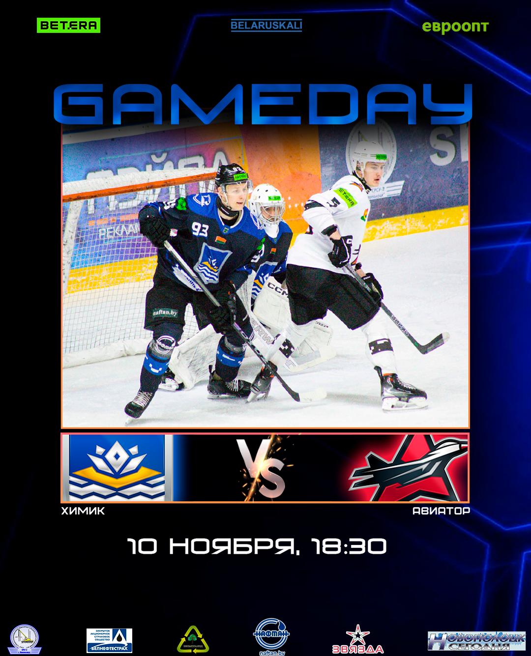 Начало матча в 18:30 в Ледовом дворце, г. Новополоцк.