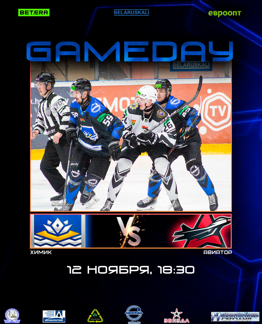 Начало игры в 18:30 в Ледовом дворце, г. Новополоцк.
