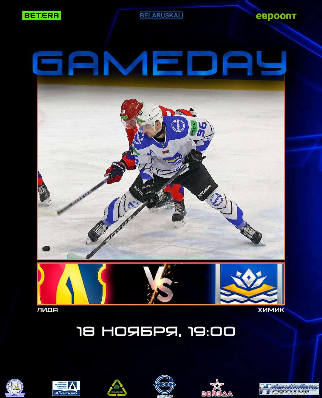Начало игры в 19:00 в Ледовом дворце, г. Лида.