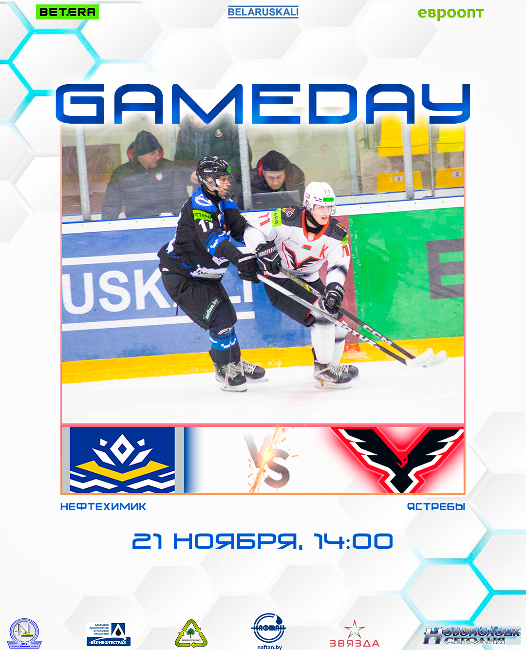 Начало игры в 14:00 в Ледовом дворце, г. Новополоцк.