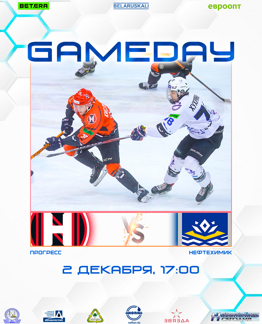 Начало матча в 17:00 в Ледовом дворце, г. Гродно.
