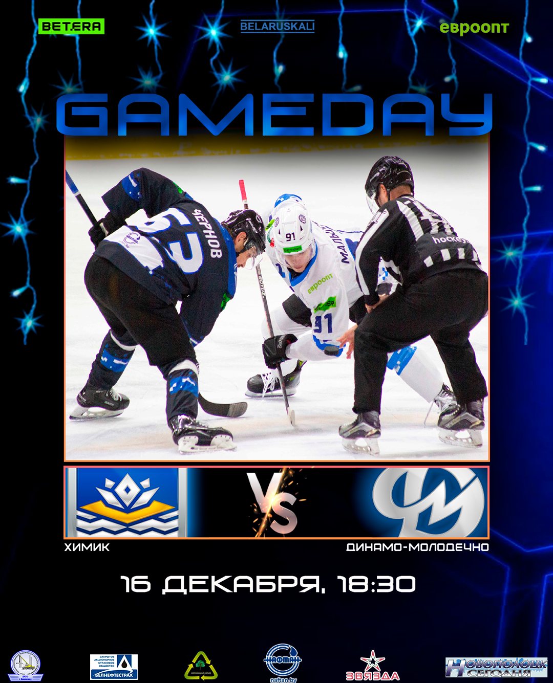 Начало матча в 18:30 в Ледовом дворце, г. Новополоцк.