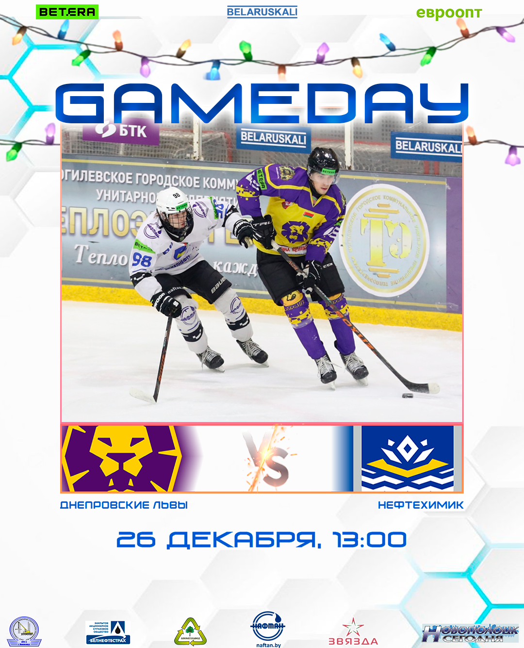 Начало матча в 13:00 в Ледовом дворце, г. Могилев.