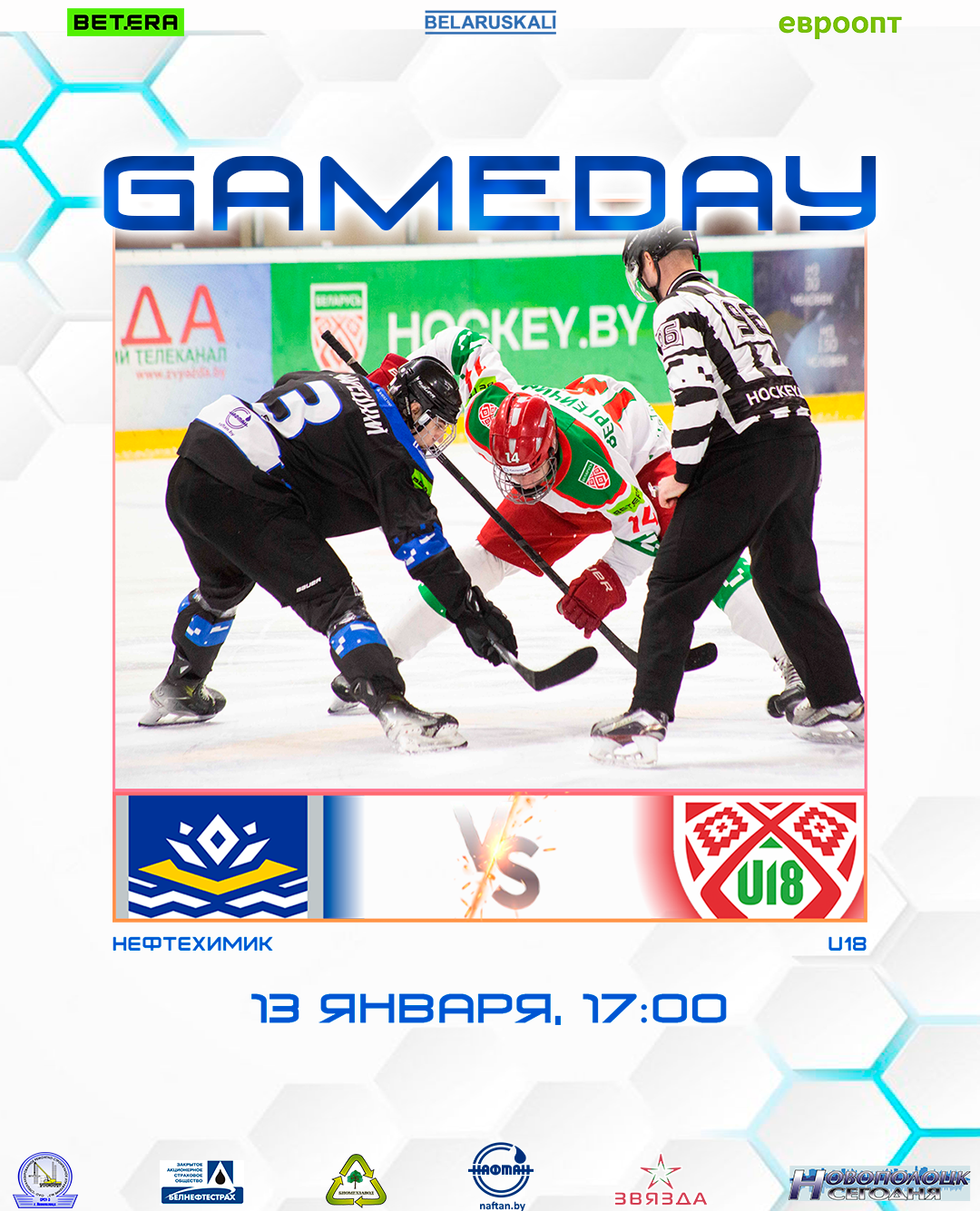 Начало матча в 17:00 в Ледовом дворце, г. Новополоцк.