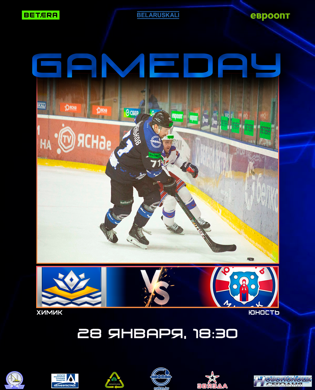 Начало матча в 18:30 в Ледовом дворце, г. Новополоцк.