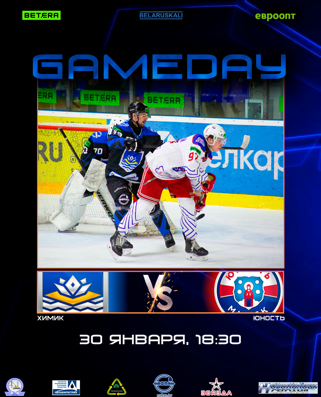 Начало игры в 18:30 в Ледовом дворце, г. Новополоцк.