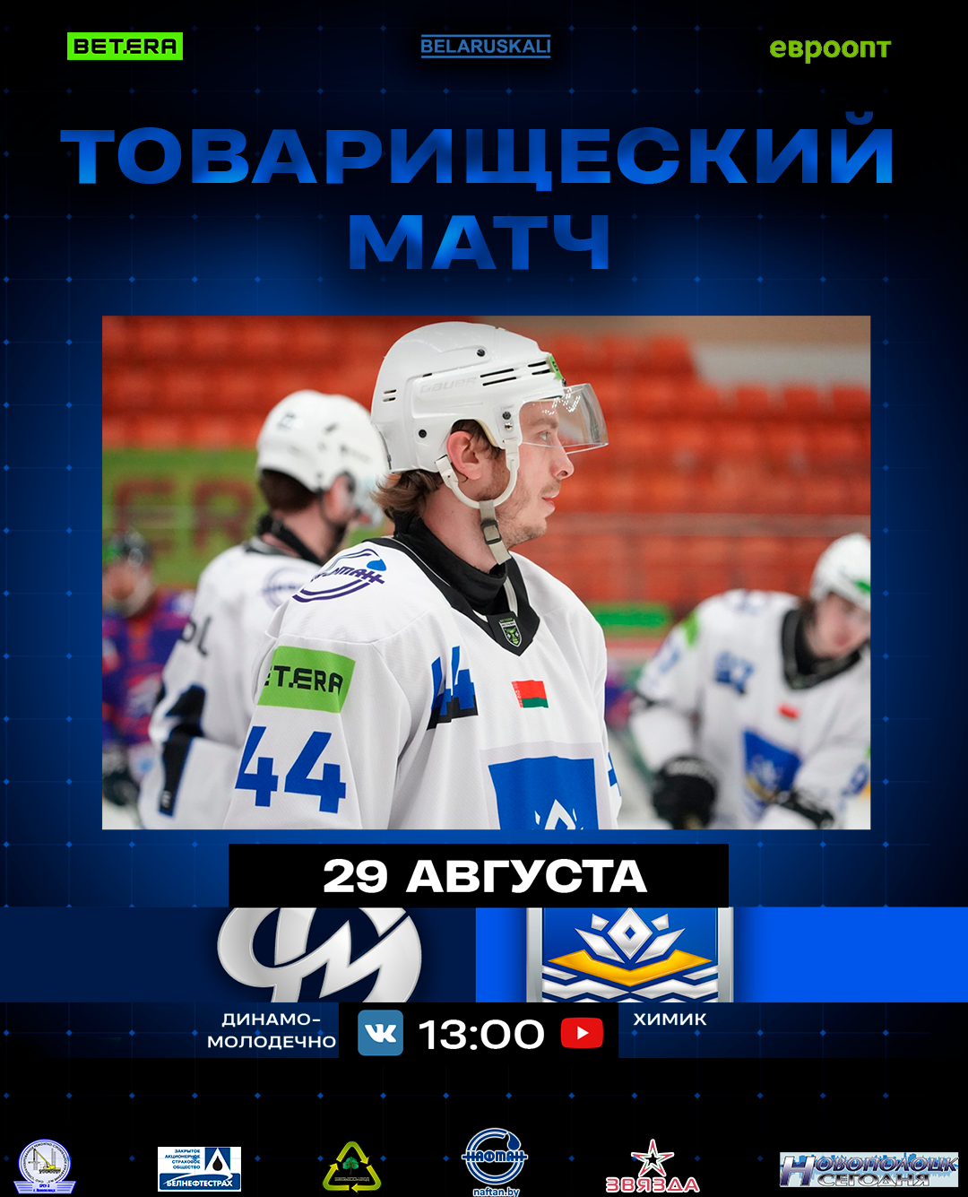 Трансляцию можно будет посмотреть на YouTube-канале: «Хоккей Беларуси | Экстралига»