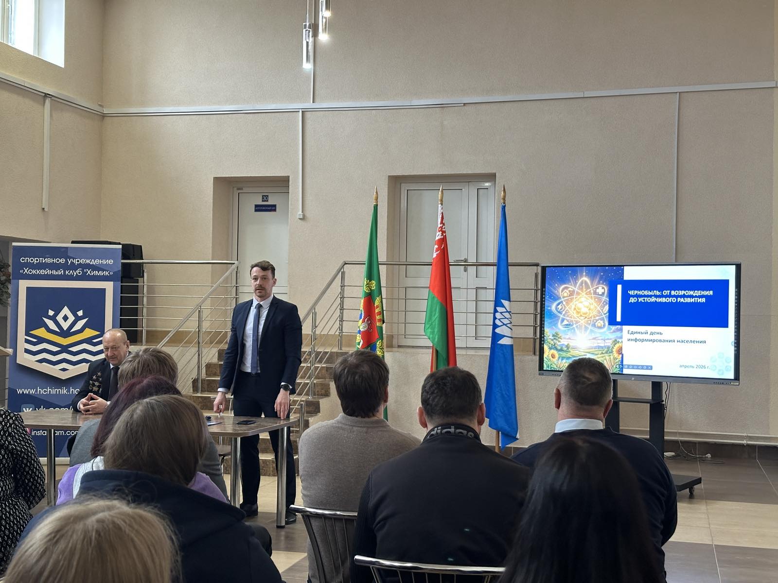 Андрей Вячеславович Ильин, генеральный директор спортивного учреждения «Хоккейный клуб «Химик», довёл информацию работникам структурных подразделений о проведении республиканского субботника 18 апреля 2026 года, об организационных мероприятиях и планируемых объемах работы для участников субботника.
